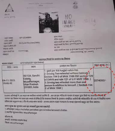 Muzzaffarnagar Viral Traffic Fine: এক লক্ষ টাকার স্কুটার নিয়ে বেরিয়ে ২১ লক্ষ জরিমানা! চালান দেখে হতবাক চালক, ভাইরাল ছবি