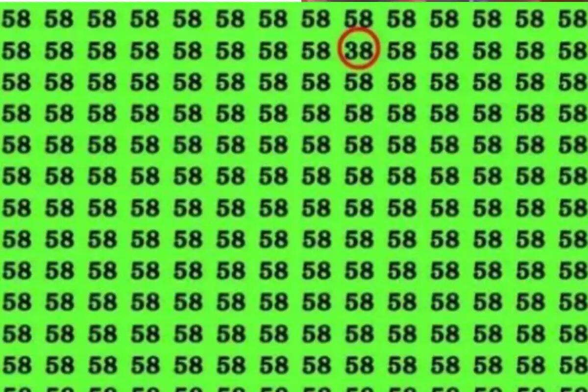 58 এর ভিড়ে লুকিয়ে আছে 38। ফ্রেশারলাইভ দ্বারা তৈরি এই চ্যালেঞ্জে, আপনি একটি সবুজ পটভূমিতে কালো রঙে 58 লেখা দেখতে পাবেন। প্রতিটি লাইনে শুধুমাত্র এবং শুধুমাত্র এই সংখ্যাটি দৃশ্যমান, যদিও এটিতে অন্য একটি সংখ্যা উপস্থিত রয়েছে, যা কারও নজরে আসতে সময় নেবে। আপনার জন্য চ্যালেঞ্জ হল এই ভিন্ন সংখ্যাটি ৪ সেকেন্ডের মধ্যে খুঁজে বের করা এবং দেখানো।