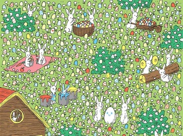 ডিম রঙ করা। এই ছবির মূলে আছে ইস্টার নিয়ে লোককথা, যেখানে ইস্টার বানি বা খরগোশরা ডিম রাঙিয়ে উপহার দেয় শিশুদের, সেই ডিমের খোসা ভাঙলেই ভিতর থেকে বেরিয়ে আসে চকোলেট বা উপহার। ছবির ইস্টার বানিরা আপাতত সেই ডিম রঙ করার কাজই করে চলেছে। মাঠে ছড়িয়ে থাকা ডিমে চোখ রাখলে দেখাও যাবে কেমন সুন্দর নকশা তারা বুনেছে সাদা খোলে। এবার আমাদের কাজ হল এখান থেকে একটা পুরো সাদা ডিম খুঁজে বের করা, যা এখনও রঙ করা হয়নি। এটা খুঁজে বের করতে হবে ১০ সেকেন্ডে।