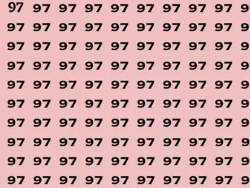 এই ছবিতে গোলাপি পটভূমির উপর কালো রঙে ইংরেজিতে লেখা রয়েছে ’97’। তবে মজার ব্যাপার হল ’97’ মধ্যে লুকিয়ে ’67’। এই সংখ্যাটি আপনার চোখের সামনেই রয়েছে, তবে তা দেখতে পাওয়া খুব সহজ নয়। আপনাকে এটি খুঁজে বের করতে হবে ৩ সেকেন্ডে। দেখে খুব কঠিন লাগলেও ততটা কঠিন নয়, একটু মনোযোগ দিলেই পারবেন।