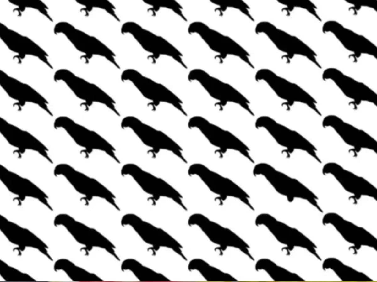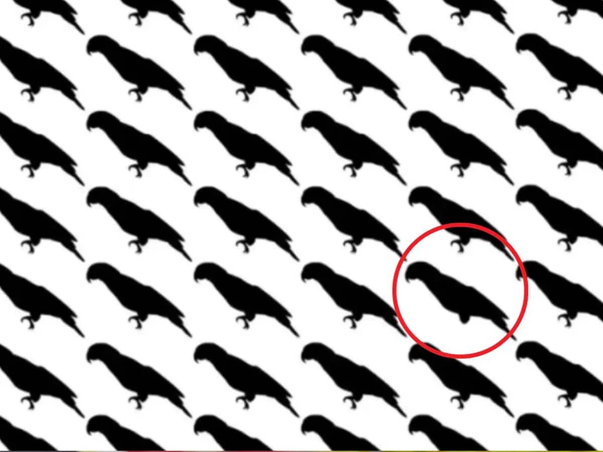 ছবিতে সাদা পটভূমির উপর ছোট কালো টিয়া পাখি দেখতে পাচ্ছেন। কিন্তু এদের ভিড়ে লুকিয়ে রয়েছে পা নেই এমন একটি টিয়া। পাখিটি খুঁজে বের করতে ৯ সেকেন্ড সময় দেওয়া হবে।