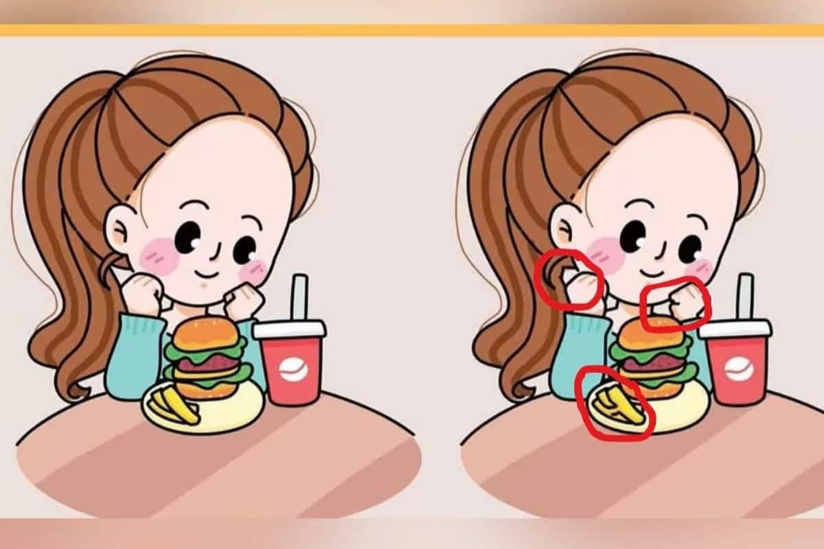 ছবিতে দেখা যাচ্ছে, একটি মেয়ে ক্রমাগত তার সামনের টেবিলে খাবারের দিকে তাকিয়ে আছে। তার সামনে একটি বার্গার ও কোল্ড ড্রিংক রাখা হয়েছে। অন্য ছবিতেও ঠিক একই রকম দেখা যাচ্ছে। দুটি ছবিই দেখতে হুবহু একই। কিন্তু যে ব্যক্তি এটি শেয়ার করছেন তিনি দাবি করেছেন যে তাদের মধ্যে কিছু পার্থক্যও রয়েছে। সবার জন্য সেগুলি খুঁজে পাওয়া সহজ হবে না। আপনাকে এই দুটি ছবির মধ্যে তিনটি পার্থক্য খুঁজে বের করতে হবে।