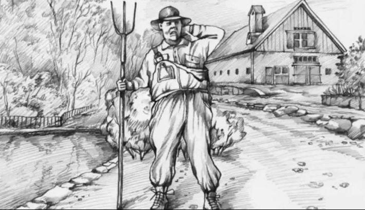 সেই স্কেচে দেখা যাচ্ছে গ্রামের পথে এক কৃষক দাঁড়িয়ে আছেন ৷ তাঁর ডান হাতে ধরা আছে একটি আঁকশি ৷ বাঁ হাত মাথার পিছনে ৷ যেন মাথা চুলকোচ্ছেন ৷ তাঁর চারপাশে দেখা যাচ্ছে গাছপালা ও ঝোপঝাড় ৷ অদূরে দেখা যাচ্ছে একটি কুঁড়েঘরও ৷ এই ছবিতে লুকিয়ে আছে তাঁর স্ত্রী মুখও ৷ তাঁকে খুঁজে পেয়ে আপনি তাঁকে সাহায্যও করতে পারেন ৷