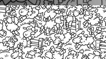 ছবিটি আসলে ডুডল আর্টের। সাদা ব্যাকগ্রাউন্ডে কালো কালি দিয়ে ডুডল আঁকা হয়েছে। দেখা যাচ্ছে ছবিটিতে রয়েছে এক পাল ভেড়া বা মেষ। তার মাঝেই কিছু বেড়া, ফুল এবং প্রজাপতিও চোখে পড়ছে। কিন্তু যেটা চট করে চোখে পড়ছে না, সেটি হল একটি মুরগি ছানা। আসলে ভেড়ার পালের মাঝেই কোথাও দিব্যি গা-ঢাকা দিয়ে রয়েছে সে। আর সেই মুরগি ছানাটিকে খুঁজে বার করতে হবে। তা-ও মাত্র ১১ সেকেন্ডের মধ্যে। এটাই আজকের চ্যালেঞ্জ!
