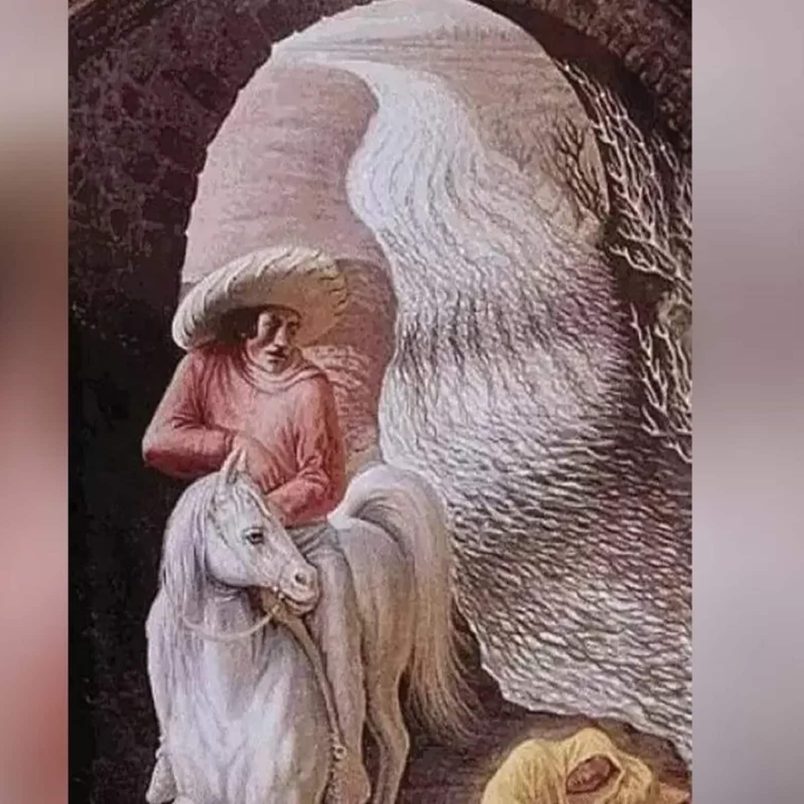 প্রথমেই আসা যাক, ছবিটিতে আর কী কী দেখা যাচ্ছে, সেই সংক্রান্ত আলোচনায়। এই ছবিটি ভাল করে দেখলে মোট চারটে ছবি আমরা দেখতে পাব। আর সেগুলি হল এক বয়স্ক মানুষের মুখ, এক অশ্বারোহী, নদীতটে শুয়ে থাকা এক মহিলা, নদীর উপর থাকা পাথুরে পথ। তাই দেখে নেওয়া যাক, কোন ছবি কী বলে।