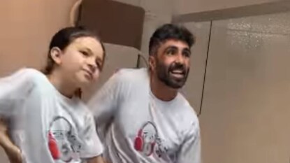 Father Daughter Dance : শ্রীবল্লীর তালে এক ব্যক্তি ও তাঁর শিশুকন্যাকে নাচতে দেখা যায়, বলা ভালো হুক স্টেপ ফলো করতে দেখা যায়।