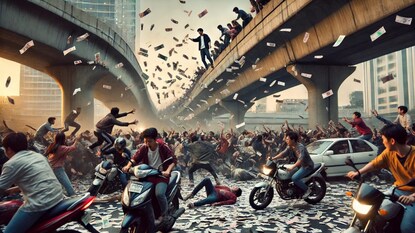 ফ্লাইওভার থেকে টাকা পড়তে দেখে অনেকেই গাড়ি থামিয়ে টাকা কুড়নোর জন্য নেমে পড়েন। কেউ দ্রুত দৌড়ে বেশি টাকা সংগ্রহের চেষ্টা করেন, কেউ আবার মাটিতে পড়ে থাকা টাকা তুলে নিতে ব্যস্ত হয়ে পড়েন। এমনকি কিছু বাইকচালকও নিজেদের যানবাহন ফেলে রেখে রাস্তায় দৌড়তে শুরু করেন। এ দৃশ্য দেখে অনেকেই হতবাক হয়ে যান। বেশ কিছু পথচারী ও গাড়ির চালক গোটা ঘটনার ভিডিও করেন এবং সোশ্যাল মিডিয়ায় শেয়ার করেন। ফলে মুহূর্তের মধ্যে এই ভিডিও ভাইরাল হয়ে যায়।