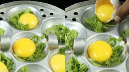 এই পদে ডিম সেদ্ধ বা ভাজার পরিবর্তে ফুড ভ্লগার ডিম এবং ধনেপাতার ফেটানো মিশ্রণটি সরাসরি ইডলির ছাঁচে ঢেলে দেন। এরপর এগুলোকে ডিমের ইডলির মতো ভাপানো হয়। পরের ধাপে শুরু হয় কারি তৈরির পালা।