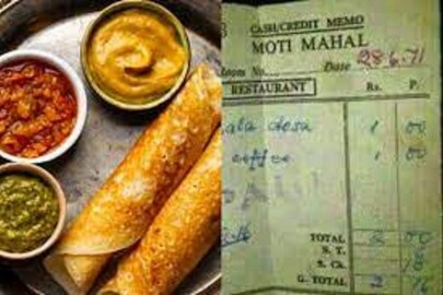 ভাইরাল হওয়া এই ছবিটিতে দেখা যাচ্ছে ১৯৭১ সালের একটি হোটেলের বিল যেখানে ২টি মসলা দোসা এবং দুই কাপ কফির দাম তখন মাত্র ২ টাকা ছিল। bill of 1971 gone viral