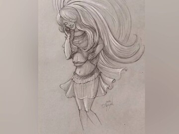 এই ছবিতে আপাতভাবে একটি মেয়ের মুখ দেখা যাচ্ছে৷ শুধু মুখ বলা ভুল, এক যুবতীর পূর্ন অবয়বের ছবি দেখা যাচ্ছে৷ সেই মেয়েটির খোলা চুলে শিল্পী তরঙ্গ তলেছেন৷ কিন্তু আপাত ভাবে ছবিটি দেখে মনে হচ্ছে, এখানে একটিই মেয়ের পূর্ণ অবয়ব রয়েছে৷ তা হলে আর মেয়েদের মুখ কোথা থেকে দেখা যাবে৷