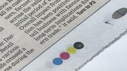 খবরের কাগজের নিচের দিকে থাকা ডটগুলি নীল, গোলাপি, হলুদ এবং কালো- এই অনুযায়ী সাজানো থাকে। এর সাহায্যে সংবাদপত্রে রঙিন ছবি এবং শিরোনাম তৈরি করা হয়। মুদ্রণ প্রক্রিয়া যখন চলে তখন চারটি রঙের প্রতিটির জন্য আলাদা প্লেট ব্যবহার করা হয়। প্লেটগুলি ভুলভাবে বসানো হলে ছবিগুলি ঝাপসা দেখাবে। ছবির রঙও ঠিক মতো দেখাবে না।