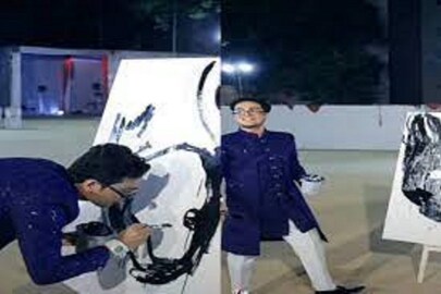 কনের স্বামী বরুন ক্যানভাসে তার কনের একটি আসল উপসাইড ডাউন ছবি এঁকেছিলেন, যা ছবি সম্পূর্ণ হওয়ার পর তার প্রকৃত শিল্পকর্মটি সবার সামনে তুলে ধরার জন্য উল্টে দেওয়া হয়।