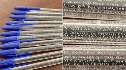 অপরাধের বিচার করতে আইন নিয়ে পড়াশোনা৷ ক্রিমিনাল ল’ নিয়ে পড়াশোনা করে আইনজীবী হয়ে ওঠার পরীক্ষাতেই কিনা অসদুপায় অবলম্বন! সেই নকল করাও হয়েছে অত্যন্ত মাথা খাটিয়ে৷ ছবি শেয়ার করেছেন স্বয়ং শিক্ষিকা৷ স্পেনের এক শিক্ষিকা শেয়ার করেছেন ১১ টি কলমের ছবি৷ সেখানে খোদাই করা আছে আইন পাঠ্যক্রমের সম্পূর্ণ সিলেবাস৷ ট্যুইটারে শেয়ার করার পর থেকে সামাজিক মাধ্যমে আপাতত ভাইরাল সেই ছবি৷ খুদে খুদে অক্ষরে ধরা হয়েছে পুরো সিলেবাস৷ নকল করার এই অভিনব কায়দায় হতবাক নেটিজেনরা৷