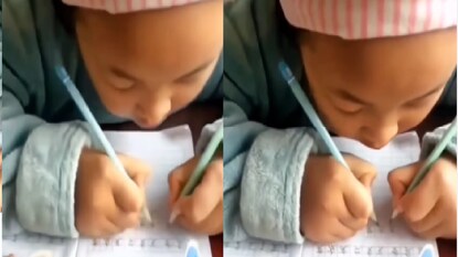 একসঙ্গে ২ হাত দিয়ে লিখতে পারে এই মেয়ে! অদ্ভুত দক্ষতা দেখে তাজ্জব নেটিজেনরা