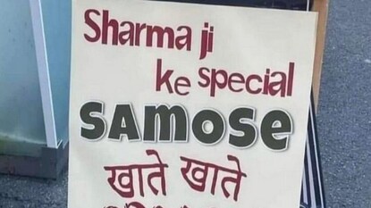 Foodgasm: “শর্মা জি কে সমোসে খাতে খাতে অর্গ্যাজম হো যায়,” লেখা হয়েছে ওই বিজ্ঞাপনটিতে।