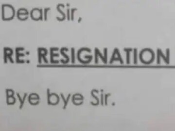 দলে রয়েছেন বেশ কয়েকটি অফিসর বস। তাঁরাও লিখলেনস কোনও এক সময় তাঁরাও সহকর্মীর থেকে এতটাই কম শব্দে লেখা ইস্তফাপত্র পেয়েছেন।