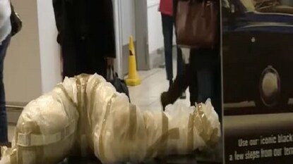 কী রয়েছে এই ভাইরাল ভিডিওতে? দেখা গিয়েছে, লন্ডনের বিমানবন্দরের ব্যাগেজ বেল্টের সামনে নিজেদের বাক্স-প্যাঁটরার জন্য অপেক্ষা করছেন যাত্রারী। সেখানে পর পর আসছে নানা ধরনের ব্যাগ, স্যুটকেস। আর তার মধ্যেই হঠাৎ এসে হাজির প্লাস্টিকে আটকানো একটি মৃতদেহ। দেখে মনে হচ্ছে, যেন কোনও মৃতদেহকে বাবল প্লাস্টিকে মুড়ে কোথাও নিয়ে যাওয়া হচ্ছে।
