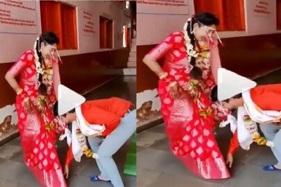 ভিডিওতে দেখা গিয়েছে, সদ্য সাত পাকে বাঁধা পড়ার পরে একটি মন্দিরে গিয়েছেন দু'জনে। সঙ্গে বাড়ির অন্যান্য সদস্যরাও রয়েছে। এমন সময়ে মন্দির থেকে বেরিয়ে স্বামীর পায়ে হাত দিয়ে প্রণাম করতে যান স্ত্রী। কিন্তু স্বামী সেই প্রণাম নেননি। বরং তিনিই মাথা ঝুকিয়ে পায়ে হাত দিয়ে শ্রদ্ধা ভরে প্রণাম জানিয়েছেন স্ত্রীকে। স্বামীর কীর্তিতে এতটাই হতবাক হয়েছেন স্ত্রী, যে তিনি আঁতকে উঠে লাফ দেন। লজ্জায় তখন তাঁর মুখ লাল হয়ে উঠেছে। স্বামী-স্ত্রীরএই মুহূর্তটি ক্যামেরাবন্দি করে সোশ্যাল মিডিয়ায় পোস্ট করেন এক ব্যভারকারী। মুহূর্তের মধ্যে তা ভাইরাল (Viral Video) হয়ে যায়। স্বামীর এমন ব্যভারে খুশি নেটিজেনরা। অনেকেই বলেছেন, স্ত্রীর পাশাপাশি স্বামীরও এমনই শ্রদ্ধাশীল হওয়া উচিত। ভিডিওর কমেন্ট বক্স ভোরে গিয়েছে লাভ ইমোজিতে।