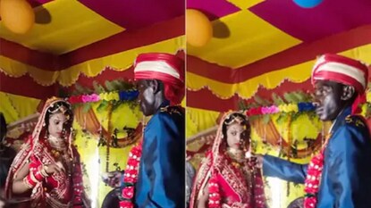 ভিডিওতে দেখা যাচ্ছে, বরের দোহারা গড়ন। গায়ের রঙ একটু চাপা। তারওপর নীল রঙের স্যুট পরেছেন। মাথায় আবার লাল পাগড়ি। গলায় মালা। বর খুবই শান্ত। কনে তাঁকে দেখে মুখ নামিয়ে নেওয়ার পরেও আরতির থালা থেকে মিষ্টি খাওয়ানোর চেষ্টা করেন। কিন্তু কনে মুখ সরিয়ে নেন। তিনি যেন বরকে ছুঁতেও রাজি নন।