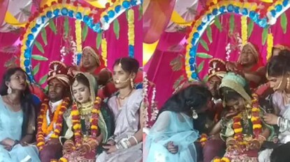 ফুল দিয়ে সাজানো বিয়ের মণ্ডপ। সানাই বাজছে। সামনে হোম কুণ্ড। দাঁড়িয়ে রয়েছেন বর। মাথা নিচু করে ধীর পায়ে এগিয়ে আসছেন কনে। পরিবারের একজন হাতে ধরিয়ে দিলেন বরমালা। বরের সামনে এসে থামলেন কনে। বরমালা পরানোর জন্য মুখ তুললেন। ব্যস, কান্না শুরু।