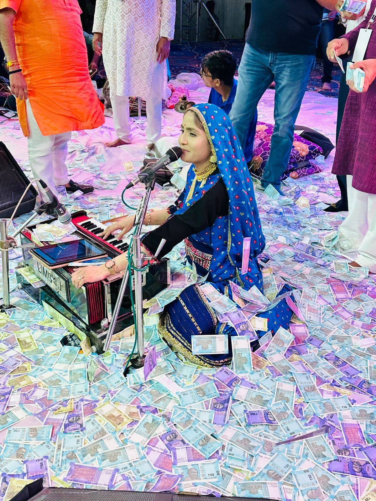 গীতা রাবারি নামী গুজরাতি লোকসঙ্গীত শিল্পী। সম্প্রতি তিনি রাতভর গান গাইলেন কচ্ছের রাপার এলাকার এক অনুষ্ঠানে। সাফল্যের শিখরে পৌঁছয় সেই অনু্ষ্ঠান। এখানেই শেষ নয়। গান গাইবার পর শিল্পীর উপর আক্ষরিক অর্থেই টাকার বৃষ্টি হয়। শেষ পর্যন্ত গুনে দেখা যায় মোট ৪ কোটি টাকার বর্ষণ হয়েছে তাঁর উপর। টাকা বৃষ্টির এই ছবি ও ভিডিও ইতিমধ্যেই ভাইরাল সোশ্যাল মিডিয়ায়।