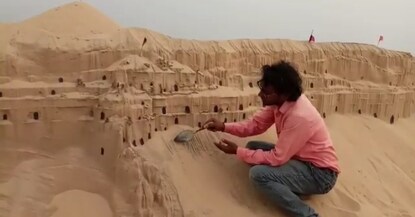 পুরী, দীঘা, গোয়ার মত সমুদ্র সৈকতে দেখা যায় বালি আর্ট বা ভাস্কর্য শিল্প। বালি দিয়ে শিল্পীরা তৈরি করে থাকেন নানা ধরণের ভাস্কর্য। এবার সেই একই চিত্র দেখা গেল পূর্ব বর্ধমানের দামোদর নদের তীরে (East Bardhaman News)। নিজের শিল্পকলাকে সকলের সামনে তুলে ধরতে, নদীর তীরে বালির দ্বারা শিল্প ফুটিয়ে তুললেন বিশিষ্ট শিল্পী রঙ্গাজীব রায়। আর সেই শিল্পকলা দেখতে ইতিমধ্যেই ভিড় জমাচ্ছেন বিভিন্ন জায়গার মানুষ। লাল কাপড় সুত, দেশলাই কাঠি দিয়ে তৈরি করেছেন এই অভিনব টেম্পলটি। যদিও তৈরি করার পরে বৃষ্টির কারণে ভেঙে যায় বলে একটু মন খারাপও হয়েছিল শিল্পী রঙ্গাজীব বাবুর।