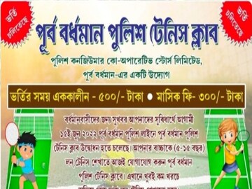 #পূর্ব বর্ধমান: ফুটবল, ক্রিকেট, ভলিবল, বাস্কেটবল, সাঁতার, দাবা প্রশিক্ষণের ব্যবস্থা ছিলই বর্ধমান শহরে। তবে এ বার লন টেনিসের প্রশিক্ষন দেওয়া হবে শহরে। খোদ জেলা পুলিশের উদ্যোগেই এই প্রশিক্ষণ দেওয়া হবে। পূর্ব বর্ধমান পুলিশ কনজিউমার কো-অপারেটিভ স্টোর্স লিমিটেড - এর উদ্যোগে আগামী ১৫ জুন থেকে পুলিশ লাইনে শুরু হবে প্রশিক্ষন। পাঁচ থেকে ১৫বছর বালক ও বালিকাদের জন্য শুরু হচ্ছে, "পূর্ব বর্ধমান পুলিশ টেনিস ক্লাব।" খুব কম খরচে অভিজ্ঞ প্রশিক্ষক দ্বারা প্রশিক্ষণের ব্যবস্থা করা হচ্ছে পুলিশ টেনিস ক্লাবের উদ্যোগে। এই প্রশিক্ষন নিতে গেলে ভর্তির সময় মাত্র ৫০০ টাকা ও প্রতি মাসে ৩০০ টাকা দিতে হবে শিক্ষানবিশদের।