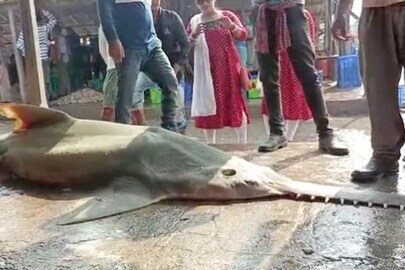 #দিঘা: দিঘায় মৎস্যজীবীদের জালে উঠল বিরল প্রজাতির চিরুনি ফাল সামুদ্রিক মাছ। বিশালাকৃতির এই মাছের দেখা সাধারণত গভীর সমুদ্রে মেলে। এই মাছের পাখনা থেকে জীবনদায়ী ওষুধ তৈরি হয়। ফলে আন্তর্জাতিক বাজারে এই মাছের বিরাট চাহিদা রয়েছে। বিরল প্রজাতির হওয়ায় এই মাছের খুব কমই দেখা মেলে।