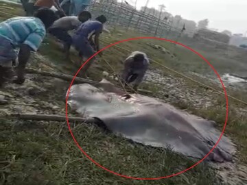 South 24 Parganas News : মাছটির ওজন প্রায় ৩৫০ কেজি। মাছটি জালে পড়ার পর মাছটিকে প্রায় ১৫ থেকে ১৬ জন মিলে টেনে ডাঙায় আনতে হয়েছে।