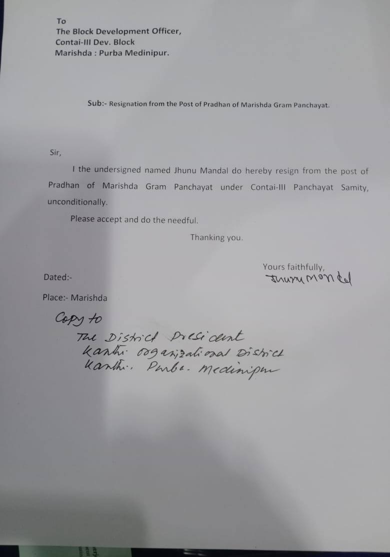এরপরেই কাঁথির সভা থেকে অভিষেক বন্দোপাধ্যায় জানান, ৪৮ ঘন্টার মধ্যে নিজেদের পদ থেকে ইস্তফা দিতে হবে এই তিন পদাধিকারীদের। সেইমতো আজ রবিবার দলের পদ থেকে ও পঞ্চায়েত প্রধান, উপপ্রধানের পদ থেকে থেকে ইস্তফা দিলেন তাঁরা। প্রসঙ্গত, এই বিষয়ে গতকালই তৃণমূল সর্বভারতীয় সাধারণ সম্পাদক অভিষেক বন্দোপাধ্যায় নির্দেশ দিয়ে স্পষ্ট জানিয়ে দিয়েছিলেন আগামী ৪৮ ঘণ্টার মধ্যে পদত্যাগ করতে হবে।