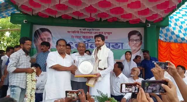 তারপরেই তৃণমূলে যোগদানের পর সাগরদিঘিতে তৃণমূলের পক্ষ থেকে সংবর্ধনা দেওয়া হল বিধায়ক বায়রন বিশ্বাসকে। বৃহস্পতিবার এই সংবর্ধনা সভায় জঙ্গিপুর জেলা তৃণমূলের চেয়ারম্যান কানাই চন্দ্র মণ্ডল, সভাপতি খলিলুর রহমান, জেলা পরিষদের সভাধিপতি সামসুজ্জোহা বিশ্বাস-সহ অন্যান্য নেতৃত্বদের উপস্থিতিতে ফুলের তোড়া দিয়ে সংবর্ধনা দেওয়া হয় বায়রন বিশ্বাসকে। এদিনের সভায় তৃণমূল কর্মী সমর্থকদের উপস্থিতি ছিল চোখে পড়ার মতো।
