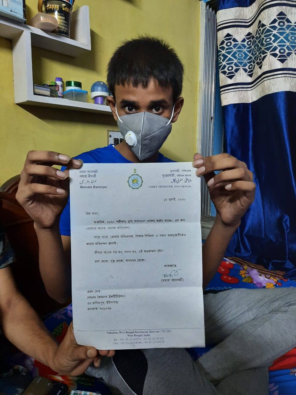 বাবার পড়ানো ও নিজের পরিশ্রমের জেরেই এ বছর মাধ্যমিকে অষ্টম স্থান অধিকার করতে পেরেছে বলে জানিয়েছে বিরাটি ইটলগাছার বাসিন্দা অয়ন।