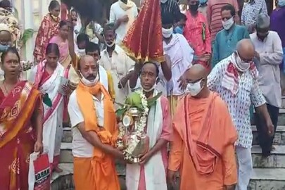 এদিন সকালে পূজার্চনার পর মন্দির থেকে মায়ের রূপোর ঘট নিয়ে শোভাযাত্রা বের হয়। ঢাক বাজনা সহ ঘোড়ায় টানা রথের ওপর বিশেষ ছাতার তলায় ঘট নিয়ে বসেন পুরোহিতরা। বিভিন্ন পথ পরিক্রমা করে শোভাযাত্রা যায় কৃষ্ণসায়রে। সেখানে মন্ত্রোচ্চারণের মধ্য দিয়ে মন্দিরের প্রধান পুরোহিত ঘট জলপূর্ণ করেন। এরপর তা নিয়ে এসে মন্দির প্রতিষ্ঠা করা হয়। ছিলেন জেলার পুলিশ প্রশাসনের আধিকারিক ও অন্যান্য আধিকারিকরা। অন্যান্যবার মহালয়ার পর প্রতিপদে ঘট উত্তোলনের শোভাযাত্রায় অগণিত বাসিন্দা ভিড় করেন। তবে এবার করোনা পরিস্থিতিতে ভিড় ছিল অনেক কম।