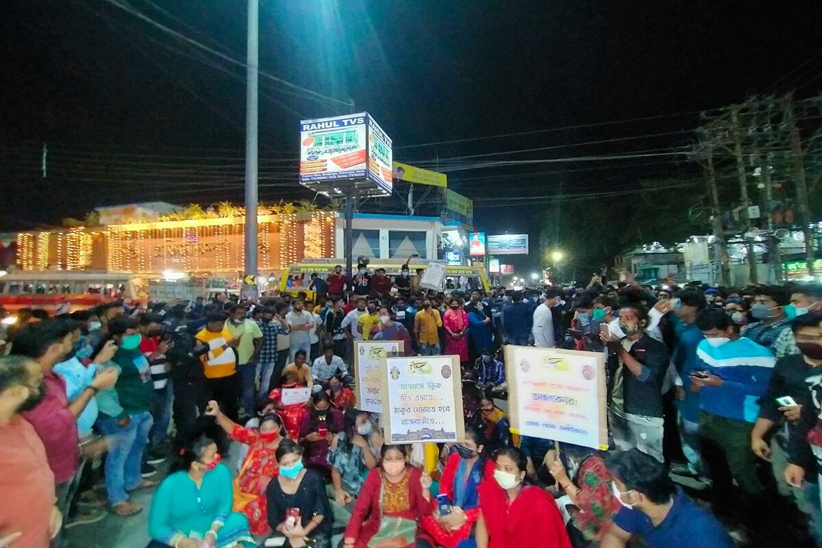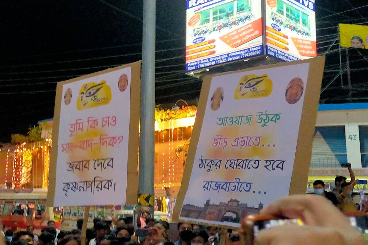 Krishnagar people agitating for prestigious immersion procession: ঘট বিসর্জন, প্রতিমা বিসর্জনে সাং প্রথা এবং প্রতিমা রাজবাড়ি প্রদক্ষিনের ঐতিহ্য বজায় রাখতে পথে নামল শহরের হাজার হাজার বাসিন্দা। সকলেরই দাবি, শহরের ঐতিহ্য নষ্ট করা যাবে না।