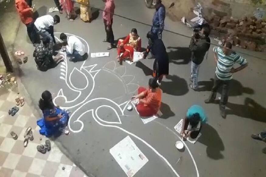 বসন্ত উৎসবের প্রাক্কালে রাতারাতি বাহারি রঙ্গোলিতে সাজল রাজপথ, কোথায় জেনে নিন..