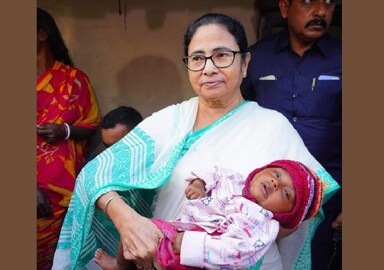 কোলে তুলে নেন এক সদ্যোজাতকে৷ সেখানে তখন ভিড় করে এসেছেন এলাকার মানুষ৷ দূর-দূরান্ত থেকে মানুষ ছুটে আসে মুখ্যমন্ত্রীকে এক ঝলক দেখার জন্য৷
