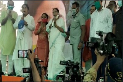 আগামী ১ এপ্রিল নন্দীগ্রামে ভোট৷ তার আগে এ দিন শেষবেলার প্রচারে একাই ঝড় তোলেন মুখ্যমন্ত্রী৷ একদিকে যখন শুভেন্দু অধিকারীর হয়ে রোড শো করেন অমিত শাহ, মিঠুন চক্রবর্তীরা, তখন হুইলচেয়ারে বসেই ভাঙাবেড়া থেকে সোনাচূ়ড়া পর্যন্ত প্রথমে রোড শো করেন তৃণমূলনেত্রী৷ এর পর তিনটি জনসভা করেন তিনি৷ টেঙ্গুয়ার সভাতেই জাতীয় সঙ্গীত গাওয়ার সময় উঠে দাঁড়ানোর ইচ্ছাপ্রকাশ করেন মুথ্যমন্ত্রী৷ তার পরই তাঁকে সাহায্য়ে এগিয়ে আসেন মঞ্চে উপস্থিত অন্যান্য়রা৷ মমতাকে উঠে দাঁড়াতে সাহায্য করতে দেখা যায় দলের রাজ্য সভাপতি সুব্রত বক্সিকে৷ যদিও তাঁকে সাহায্য না করে হাত জোড় করে যথাযথ ভাবে জাতীয় সঙ্গীত গাওয়ার জন্য় তাঁর এক সহকর্মীকে নির্দেশ দিতে দেখা যায় মুখ্যমন্ত্রীকে৷
