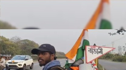 #হুগলি: ২২ ফেব্রুয়ারি হাওড়া ব্রিজ থেকে পায়ে হেঁটে ৮৩ দিনের মাথায়, লাদাখের খারদুংলা পাসে পৌঁছেছিলেন মিলন মাঝি। কাশ্মীরের লাদাখ অঞ্চলে ১৮,৩৮০ ফুট উচ্চতায় অবস্থিত এই খারদুংলা পাসটি পৃথিবীর উচ্চতম। প্রায় ২৫০০ কিলোমিটার পথ অতিক্রম করে সেখানে উঠে ভারতের জাতীয় পতাকা ওড়ালেন মিলন।