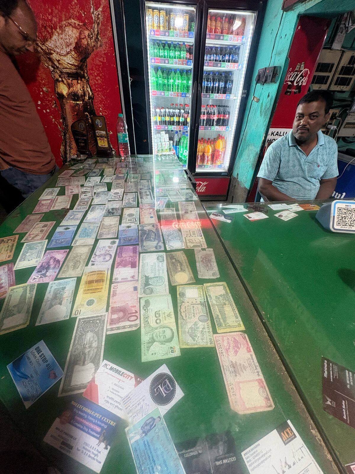 রোড সাইড ধাবার নাম কালু হোটেল। সেই হোটেলে অন্যতম আকর্ষণ হল একটা টেবিল। যেখানে সাজানো এই সব মুদ্রা। বদর বাবু জানাচ্ছেন, ‘‘এই সব টাকা তাঁকে কেউ গিফট করেছে। কাউকে দিয়ে আবার আনিয়েছেন। এটাই তার নেশা। বদর বাবু জানাচ্ছেন, বিশ্বের নানা দেশে যাওয়ার শখ রয়েছে। কাজের জন্যে তো আর সব জায়গায় যেতে পারি না। তাই যারা বিভিন্ন দেশে গিয়েছেন তাঁদের সঙ্গে গল্প করি। অনেকে যারা আমার হোটেলে খেতে আসেন তারা গল্প শোনান। সেই সব দেশের কথা শুনতে আমার ভাল লাগে।’’