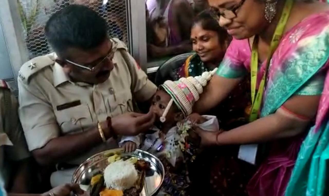 গনেশের জন্ম হয় ২০২২ সালের ডিসেম্বর মাসে। যদিও জন্মের পর থেকেই হাওড়া জিআরপির আধিকারিকরা সদ্যজাত গণেশর প্রতি বাড়িয়েছিল স্নেহের হাত। আর সেই মানবিক আবেগের প্রতিফলন দেখা গেল এদিন হাওড়া জিআরপির অফিসে। নিজেদের হাতে থালাতে ভাত, ডাল, তরকারি, মাছ-সহ একাধিক পদ সাজিয়ে নিজেদের হাতে আবেগে চোখের জলে ভিজে খাওয়ালেন তাঁদের আদরের ভাগ্নে গণেশকে। হাওড়া জিআরপির মুখ্য আধিকারিক সিদ্ধার্থ রায় ও হাওড়া ডনবস্ক আসাইলামের যুগ্ম তত্ত্বাবধানে পুলিশ মামা হয়ে উঠল গণেশর সত্যিকারের ‘মামা’।