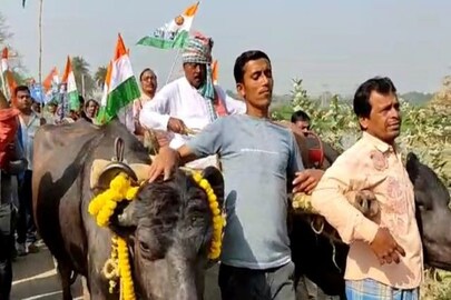 আকাশছোঁয়া জ্বালানির দাম, প্রতিবাদে গোরুর গাড়ি চড়ে অভিনব নির্বাচনী প্রচার তৃণমূল প্রার্থীর