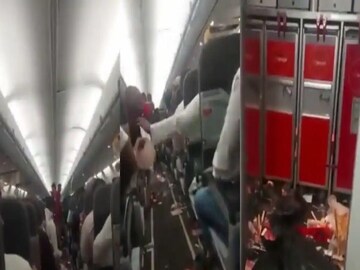 সোমবারই বিমান বিপত্তির একটি ভিডিও প্রকাশ্যে এসেছে। বিমানের এক যাত্রী ক্যামেরাবন্দি করেন সেই ঘটনা। মাত্র কিছুক্ষণের সেই ভিডিও ফুটেজে দেখা যাচ্ছে ঘটনার ভয়াবহতা, আকস্মিকতা। কীভাবে যাত্রীরা আতঙ্কিত হয়েছিলেন, সেই ছবি ধরা পড়েছে। সকলকেই দেখা গিয়েছে চিৎকার করতে। অন্যদিকে, বিমানসেবিকারা সকল যাত্রীদের আশ্বস্ত করার চেষ্টা করেছেন। ভিডিওটিতে দেখা গিয়েছে, বিমানের মেঝেতে ছড়িয়ে ছিটিয়ে পড়ে রয়েছে বিভিন্ন জিনিসপত্র। যাত্রীদের ব্যাগ থেকে শুরু করে খাবার এবং অন্যান্য জিনিসপত্র বিমানে পড়ে থাকতে দেখা গিয়েছে।