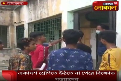আমডাঙ্গা, উত্তর ২৪ পরগনা : একাদশ শ্রেণীতে উঠতে না পেরে স্কুল কতৃপক্ষের গাফিলতির অভিযোগ তুলে আমডাঙ্গার মাধবপুর প্রহ্লাদ স্মৃতি বিদ্যাপীঠ স্কুলে ক্ষোভে ফেটে পড়ে মাধ্যমিক পরীক্ষার্থীরা। পড়ুয়াদের দাবি স্কুল কতৃপক্ষের গাফিলতির কারণে এমন আট মাধ্যমিক পরীক্ষার্থীকে মাধ্যমিক পাস করানো হয়নি।