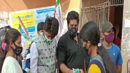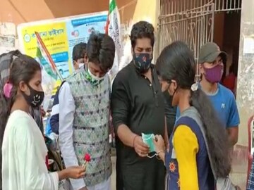 কোলাঘাট : দীর্ঘ বিরতির পর কলেজ খুলল মঙ্গলবার। দিনটিকে স্মরণীয় করে রাখতেই মেদিনীপুরের কোলাঘাটের (Kolaghat) রবীন্দ্র মহাবিদ্যালয়ে তৃণমূল ছাত্র পরিষদের অভিনব উদ্যোগ৷ কলেজের গেটে ছাত্র ছাত্রীদের তাপমাত্রা চেকিং, স্যানিটাইজার আর মাস্ক বিলি করা হয়। সেইসঙ্গে তাঁদের হাতে গোলাপফুল, চকোলেট তুলে দিয়ে স্বাগত জানানো হয়। সব কিছু দেখে শুনে খুশি কলেজ পড়ুয়ারা (School College reopen)।