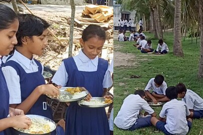 স্কুলে নেই হলঘর, শীত-গ্রীষ্ম-বর্ষা মাঠে, ঘাটে বসে মিড মে মিল খেতে হয় পড়ুয়াদের