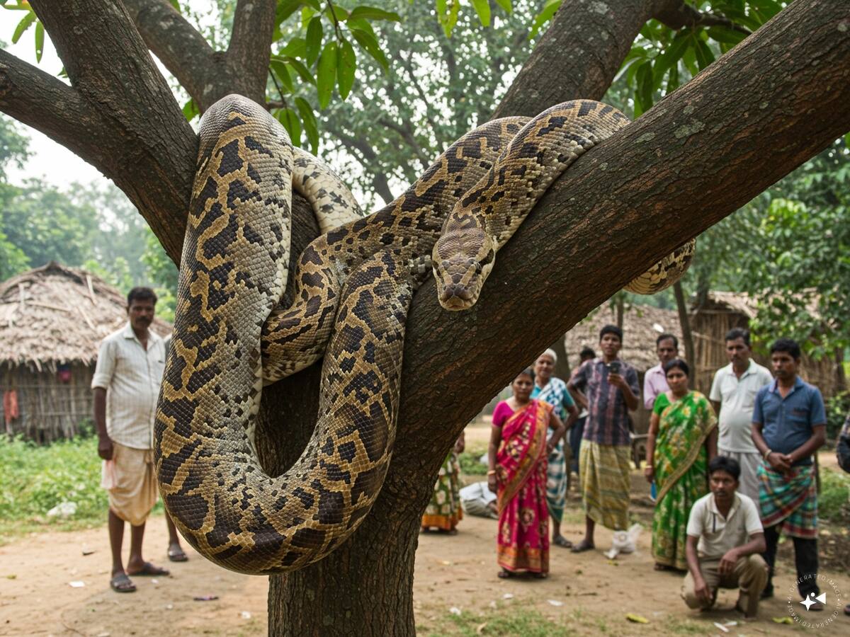 ঘটনাটি ঘটে শনিবার সকালে। এক পরিবারের আমগাছের মাথায় পাখির তীব্র চিৎকারে চমকে যান বাড়ির লোকেরা। উপরে চোখ যেতেই যা দেখেন, তাতে যেন মাথা ঘুরে যাওয়ার জোগাড়—ছটফটে পাখিদের মধ্যে কুণ্ডলী পাকিয়ে বসে এক বিশাল পাইথন! মুহূর্তে খবর ছড়িয়ে পড়ে চারদিকে। ভিড় জমে যায় গাছ তলায়!