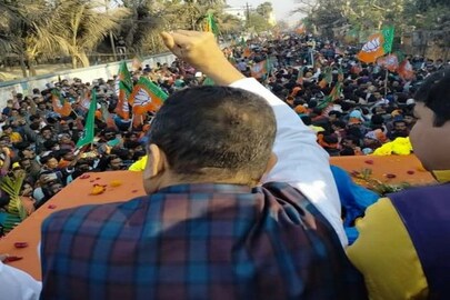 বৃহস্পতিবার আরামবাগের দৌলতপুর থেকে বাসুদেবপুর পর্যন্ত শুভেন্দু অধিকারীর যে মেগা রোড শো ছিল সেই যাত্রাপথেই এই বিরল ঘটনার সাক্ষী থাকল নিউজ এইট্টিন বাংলা।