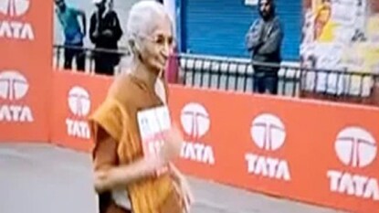 80 years woman in mumbai marathon: ৮০ বছর বয়সে ম্যারাথনে! তাও আবার শাড়ি পরে! ভাবা যায়!