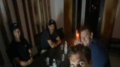 খাবার টেবিলে বসেও খেতে পারলেন না। কারণ, চার দিকে অন্ধকার। কারণ, বিদ্যুৎ সংযোগ নেই। টেবিলে জ্বলছে মোমবাতি। অন্ধকারে বসে প্যাট কামিন্স, জশ হ্যাজলউড, মিচেল স্টার্ক ও অ্যালেক্স ক্যারে। বিদ্যুৎ সংযোগ না আসায় নৈশভোজ শুরু করতে পারছেন না তাঁরা।