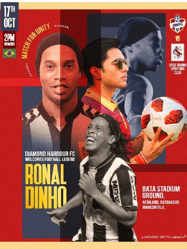 বাটা স্টেডিয়ামে সাংসদ অভিষেক বন্দ্যোপাধ্যায়ের উপস্থিতিতে তাঁর ডায়মন্ডহারবার দলের সঙ্গে মন্ত্রী সুজিত বন্দোপাধ্যায়ের দলের ম্যাচ ফর ইউনিটিতে বল পায়ে নামবেন ম্যাজিসিয়ান। ক্রীড়া উদ্যোগপতি শতদ্রু দত্ত জানিয়েছেন, “দুটো দলের হয়েই ১০ মিনিট করে খেলবেন রোনাল্ডিনহো।”